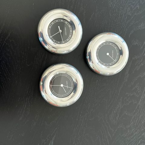 Andet, Geog Jensen, Ur , mb måler og c temperatur måler til at hænge på væggen , sælges samlet , mål 10 cm , sort kant .