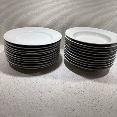 Porcelæn, tallerkner, Rørstand, 2 stk. hvide flade. Brugte men ingen skår. Ø24 cm. Absolut fin stand og super kvalitet til prisen. Fra ikke ryger hjem. Afhentet gratis eller plus 60 kr. til forsvarlig forpakning og forsendelse med tracking. Samlet for 2 stk: