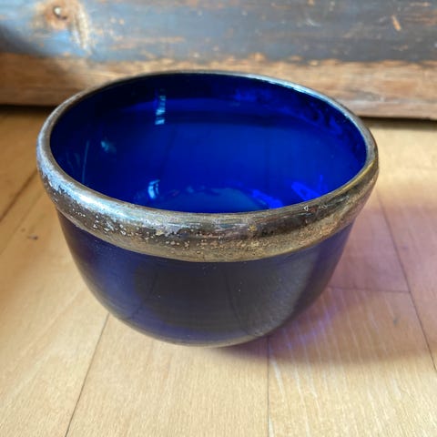 Mundblæst sukkerkumme, Hadeland Glassverk, koboltblå, 1966