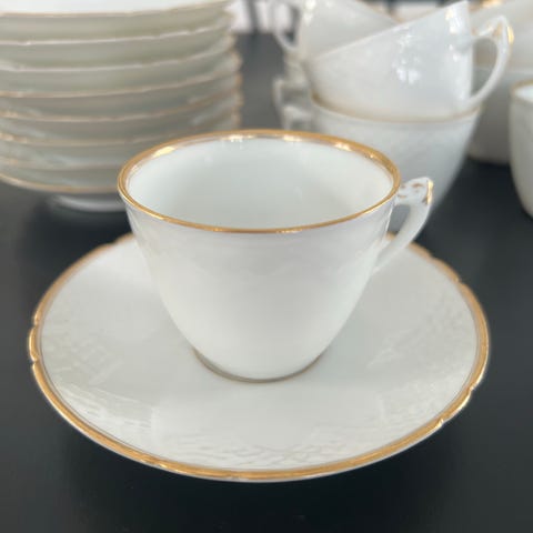 Super fint vintage Bing & Grøndahl mokka stel i smukke farver - lys blå, bordeaux og creme - 6 sæt i alt, 2 sæt af hver farve.