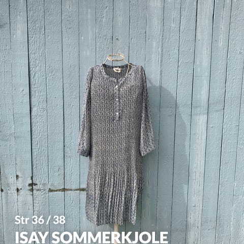 Anden kjole, Isay, str. M, hvid, Ny str. 40, kjole/tunika med god pasform og pyntestikninger øverst foran. 2 forlommer med knap på klappen. Metalknaplukning hele vejen ned foran. Elastik i midten af ryggen. 100% bomuld. Kan også bruges med farvet bælte. Længde 90 cm.