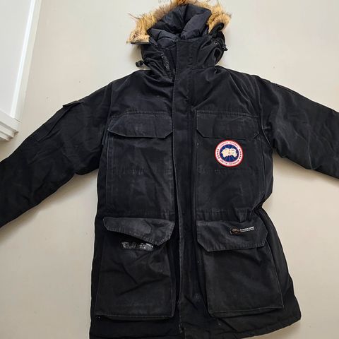 OSC dun jakke/parka i meget flot stand med stor hætte og pelskant på der kan lynes af og jakken er helt vand og vindtæt passe en der er mellem 167 tii 180 kommer fra ikke rygerhjem.