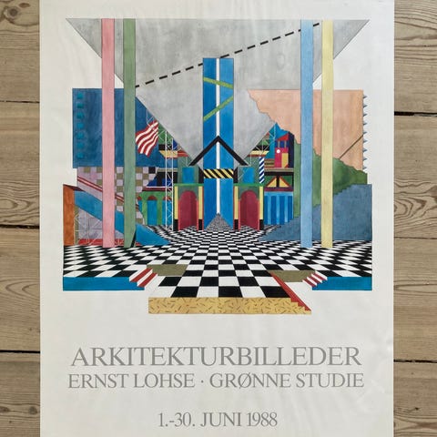 Signeret af kunstneren, indrammet i rødlakeret ramme.