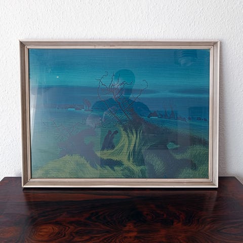 Klassisk Aage Sikker Hansen billede af kvinder der maler mel. Er stadig i original indramning. En sort træramme. Måler ca 69 × 57 cm