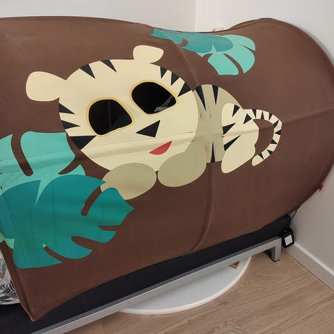 Flexa hule i brun betræk. Ikke brugt ret meget og er derfor i god stand. Nypris 1000 kr. Fra dyr og røgfrit hjem. Se mine andre Flexa annoncer.