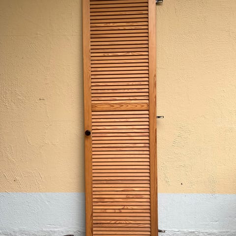 Tremme låge, Låge i træ med hængsler og lukke-beslag.