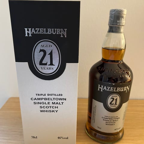 Hazelburn 21 år. Aftappet 220422. Mindre skade på æsken - se billede.