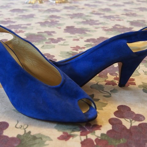 Smart lille damesko med elastik bagom hæl og åben hæl. Ruskind, sort, lille hæl.