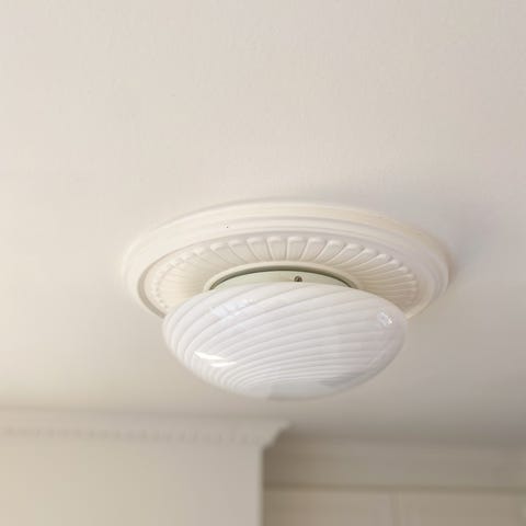 Denne smukke lampe i polkafarvet glas tilfører varme og karakter til ethvert rum – uanset om det er over spisebordet, i entréen eller i stuen.