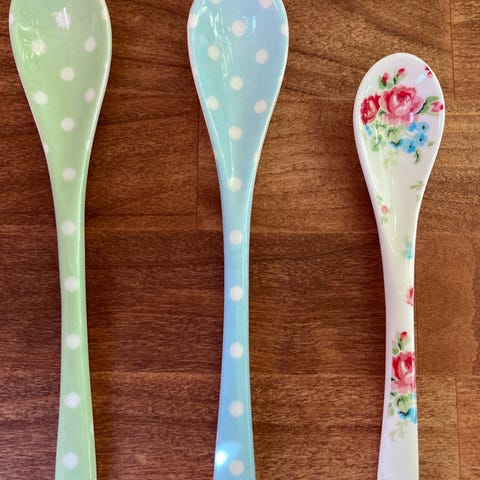 Sød teske fra Green Gate i det fine “Claire Multi” mønster. God stand – ingen skår eller misfarvninger (dog har den ene ske fået en mini misfarvning forneden - se billede). Perfekt til te, dessert eller som del af samling.