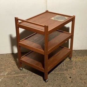 Barbord/serveringsbord/Rullebord i teaktræ,med tremmehylde.