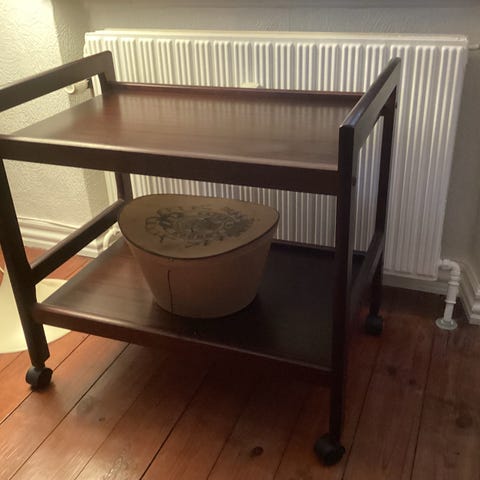 Rullebord/barbord/serveringsvogn i massiv palisander,med sort olieret plader.