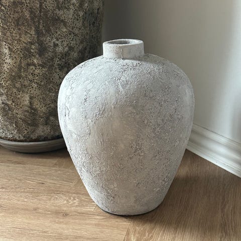 Luna krukken er fremstillet i terracotta og har en rå overflade, som kan minde om et rustikt månelandskab.