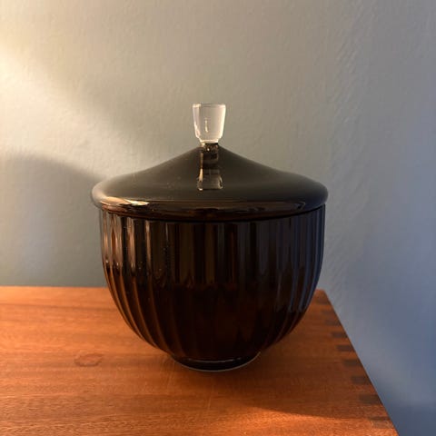 Meget velholdt uden skår og revner ,med låg og guldkamp.Højde 16,5 cm. diameter 16 cm.