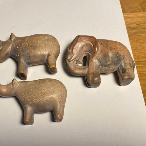 3 fedtstens figurer elefanter, næsehorn og flodhest i fin stand og uden fejl