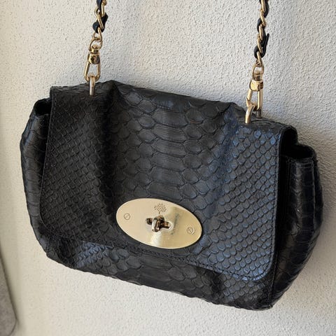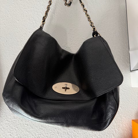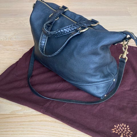 Mulberry Effie Tote - sort læder. Den er 10 år gammel, og den har naturlige brugsspor, derfor har jeg også valgt kategorien “brugt med synlige brugsspor”, så der ikke opstår en misforståelse af, at man kan se at tasken er brugt.