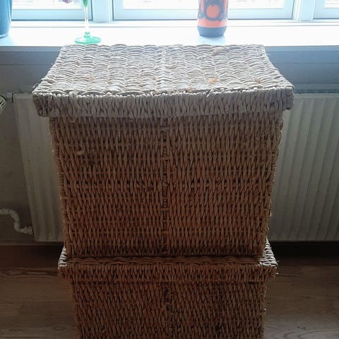 Opbevaringskasse, Curver, med blå låg, 59,5x39,5x18cm. Der er en lille slag på hjørnet, men fungerer fint. Se vores andre annoncer med opbevaringskasser. FLYTTESALG fra et røg- og dyrefrithjem.