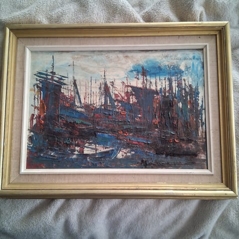 Carlo Rosberg. Oliemaleri på lærred. Middelhavsfisk Palma. Rammemål 56x64. Signeret og betegnet bagpå. Motivmål 36x44. Fin stand. Kan sendes.