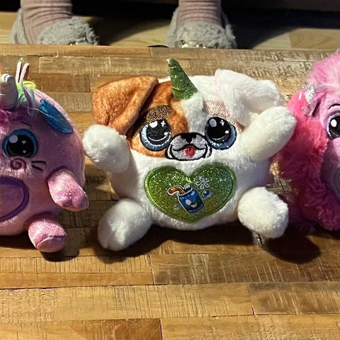 6 søde rainbowcorns. De store mangler desværre deres plastic hjerter. Men ellers er de fine. Sælges samlet. Ikke ryger hjem.
