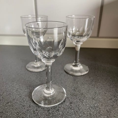 7 fine, gamle snapseglas, h. ca. 8,5 cm. Glassene er i perfekt stand. Prisen for alle er 140kr. Sender gerne.