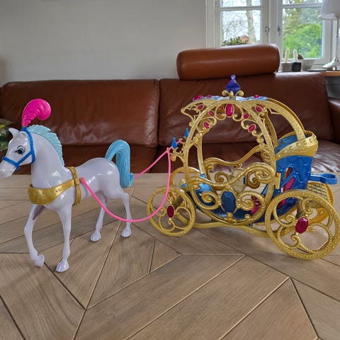 Passer til barbie dukker. Den mangler vist en ledning og et fjernstyr. Ikke ryger hjem. Dens mærke siger blue box, made in hong Kong