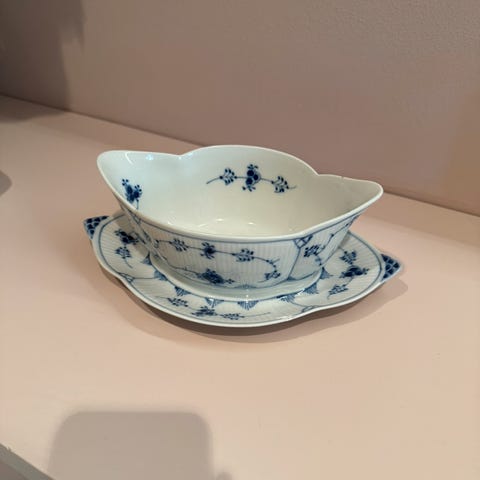 Musselmalet sovseskål uden skår og revner i jernporcelæn