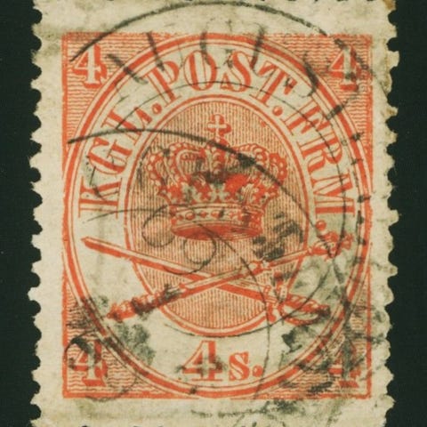 Danmark, stemplet, Krone - Scepter - Sværd, 8 skilling AFA 14, AFA værdi 1.300.