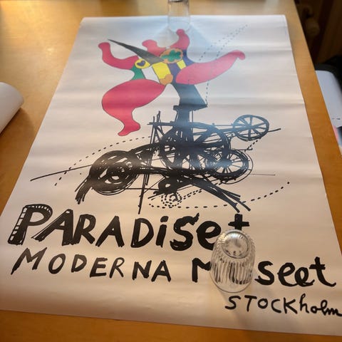 🍭🍬🍡🌈Fedeste Niki de Saint Phalle tryk i de flotteste farver. Jeg tror det har været tapet. Sat i ældre sølv træramme i lyserød passepartout