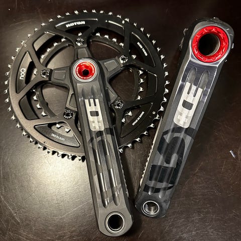 5. Rotor krankbolt med skiver (og en uden skiver) til selvudtrækkende pedalarm. 200 kr.