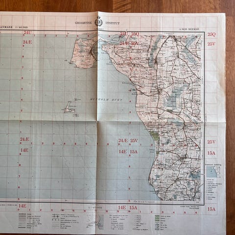 Landkort, Gribskov- Esrum sø - A2628 Fredensborg, Kort 1:40ooo "atlasblad" Geodætisk Institut 1956 - i meget fin stand
