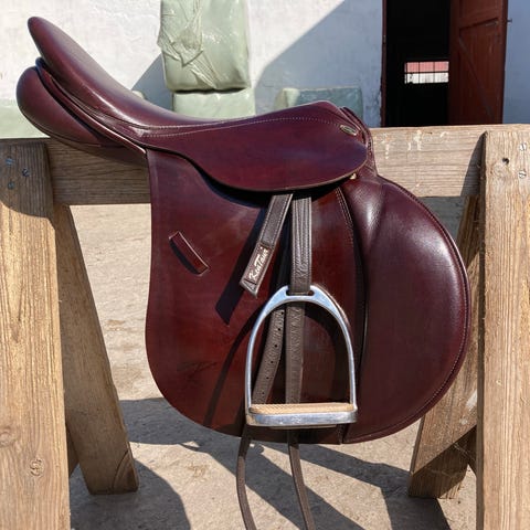 Spring sadel fra Ken and Masters 17,5 tommer, kopjern kan skiftes, pt med sort i. Pæn og velholdt.