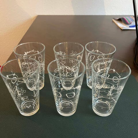 Glas, 4.stk. Pava flower Green, Poul Pava fra Aida, 4 stk. nye 32,5 cl glas med teksten "Hele verden mangler blomster"