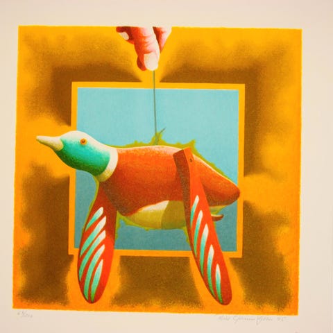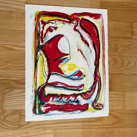 Skønt signeret og nummereret tryk nr. 51/55 af Martin Qvist 94 med original underskrifter af Erik Clausen, Jørgen Haugen Sørensen, Peter Bastian og Per Arnoldi, str. 50 x 40 cm