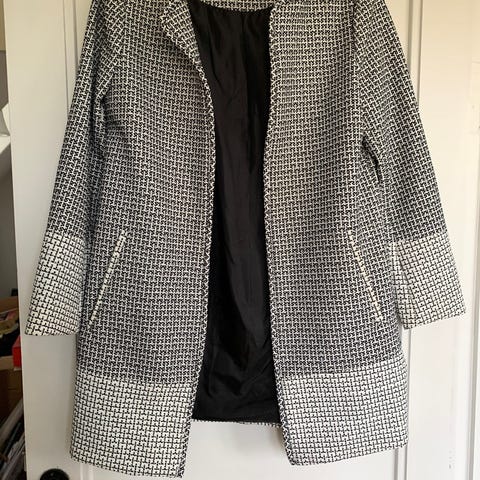 Kort frakke i sortgrå med leopard-agtigt-mønster.