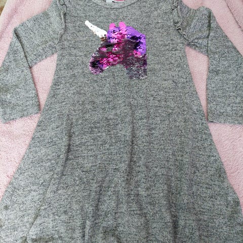 Kjole, med kort ærme, young dimension, str. 110, Str ? - der står 5 år i kjolen. Hvid/grå. Livvidde er ca. 50 cm - længde fra skulder til liv-syning er 21 cm - fuld længde 56 cm. Pigekjole. Fra røgfrit hjem. Se også mine andre pigekjoler. Kan sendes med gls. Køber betaler porto. Skriv på annoncen. (Caro) (B2)(22)