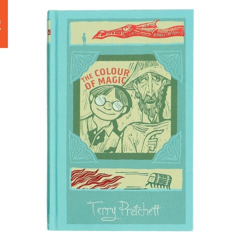 Fantasy skriplet ned af Terry Pratchett her i en pocketbog i nok 7. oplag anno 1998.