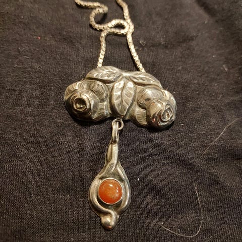 Halskæde, sølv, Eiler & Marløe, Stort smuk art déco halskæde vintage - antikt fra 1920-1925. Dansk design smykke, dessin 313. Elegante blade - ranker og sølvperler i massivt sterling sølv. Original ankerkæde. Udført af juveler Eiler & Marløe. Aktiv i Kbh 1920-1967. Kæden måler 72cmx2mm. Vedhænget måler 6cmx4,2cm incl øsken. Samlet vægt 35gram. Smuk stand og kvalitet. Stemplet E&M 830S 313.