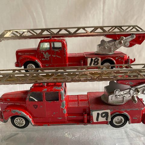 Modellastbil. Tekno. Brandbil. Volvo Ekspress. Slangevogn. Falck