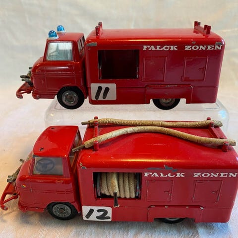Modellastbil. Tekno. Brandbil. Volvo Ekspress. Slangevogn. Falck