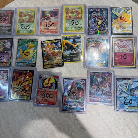 Samlekort, Pokémon, Pokemonkort som tilsammen danner et puslespil af 9 kort. Sælges til 10 kr. pr. kort - kort med slitage sælges for 3 kr. pr. stk. Jeg har flere af nogle af dem så skriv endelig, hvis du kun mangler få kort - jeg har også få brikker i den mørke version. Kan sendes forsvarligt.