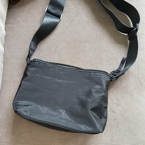 Praktisk taske. Flere gode rum og der kan ligge en 0,5 l vandflaske.