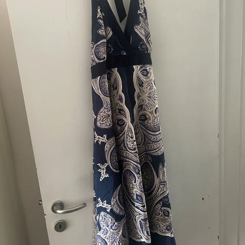 Sommerkjole, Jaeger, str. M, Sort/hvid/gul, Næsten som ny, Sød sommerkjole i str.10 med lommer og sjove stropper med kugler. Brugt sparsomt så god stand.