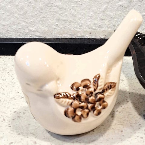 Flot koboltblå fuglefigur med hvide blomster. Helt intakt.