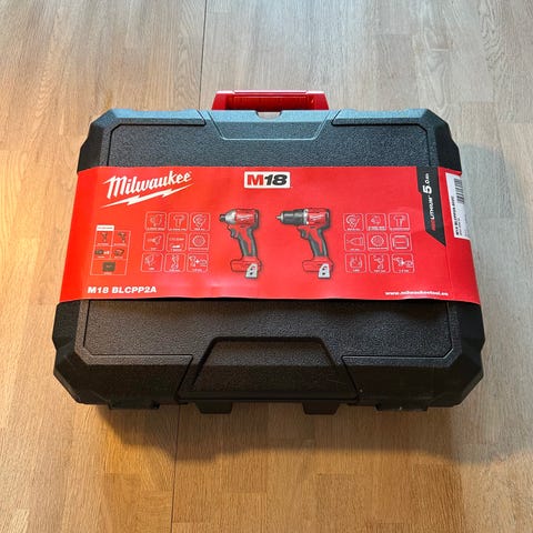 Milwaukee m18 boremaskine + borehammer og 3 stk 5amp batterier med lader sælges samlet virker og er i ok stand
