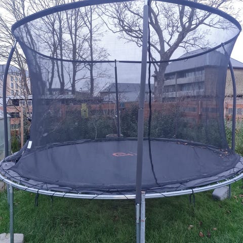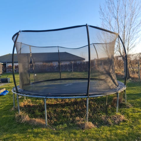 Trampolin, Ø380 m blev pakket ude men ikke samlet. Samme som den i fotoet. Den i fotoet er brugt og kan fås for en mindre pris.