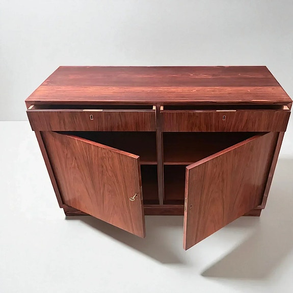 Perfekt til stue, entré, sengebordssetup eller kompakt hjemmebar – et sjældent og iøjnefaldende eksempel på dansk moduldesign fra 1960’erne.