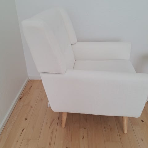 Denne polstrede lænestol er betrukket med blødt stof, så den tilbyder den bedste siddekomfort. Stuestolen understøttes af et metalstel, så den er robust og stabil. Armlænene giver dig mulighed for at hvile armene på behagelig vis.