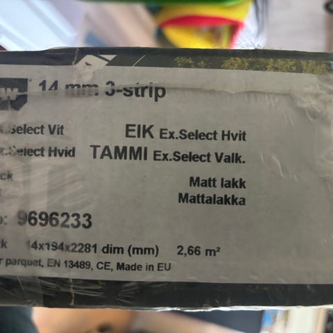 3,75 m2 ege parket i original indpakning. 20x65,5x458,5 mm