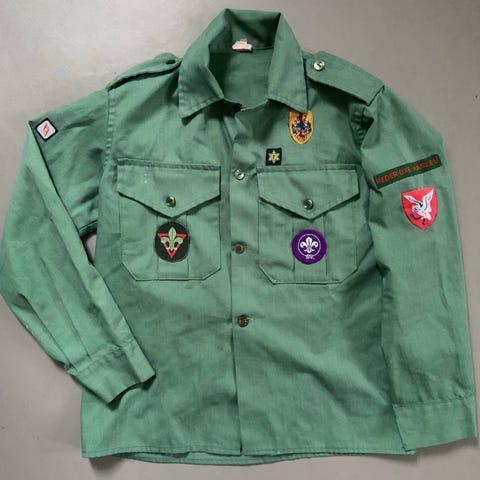 Mavebælte til KFUM-spejder med justerbart bælte. Der er jf. billede kommet en plet på bagsiden, måske tyggegummi, som godt kan tages af.
