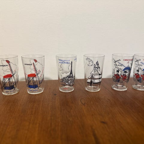 RETRO Sennepsglas fra 1950'erne, Hø. 8,2 cm, 1 stk. med Hane, 1 stk. med Egern og 1 stk. med Kronhjort, fin stand/ingen skår el. lign., sælges pr. stk.